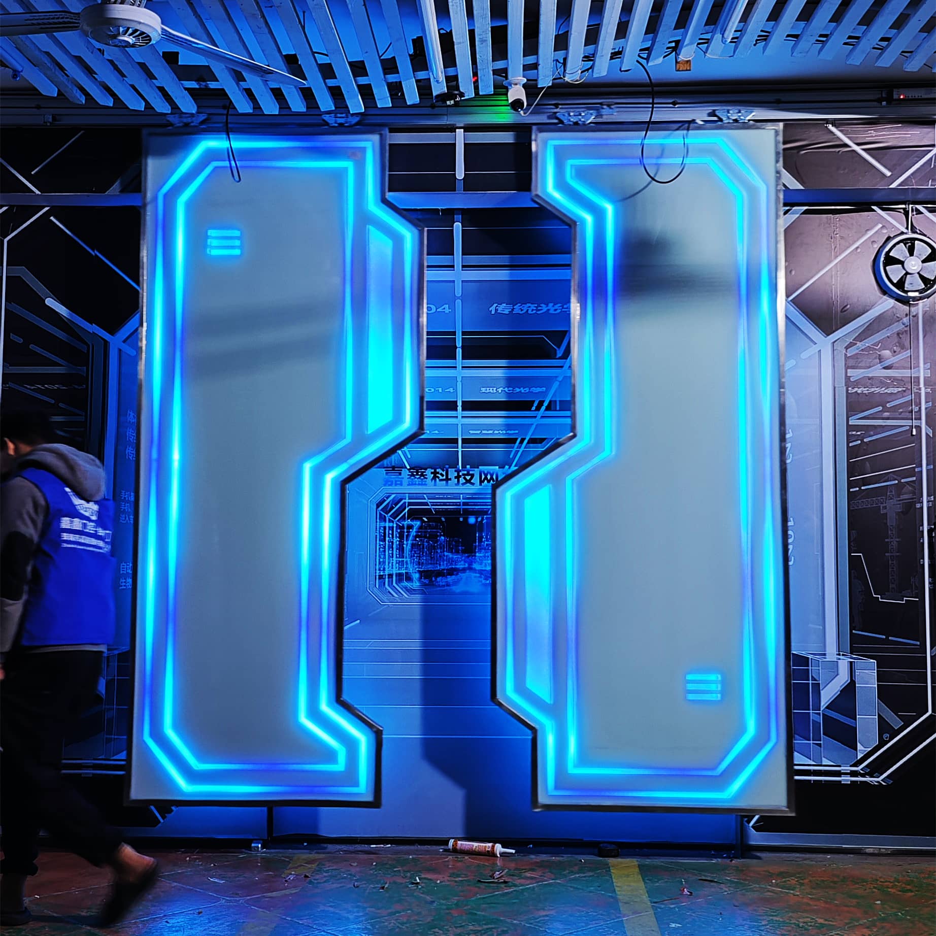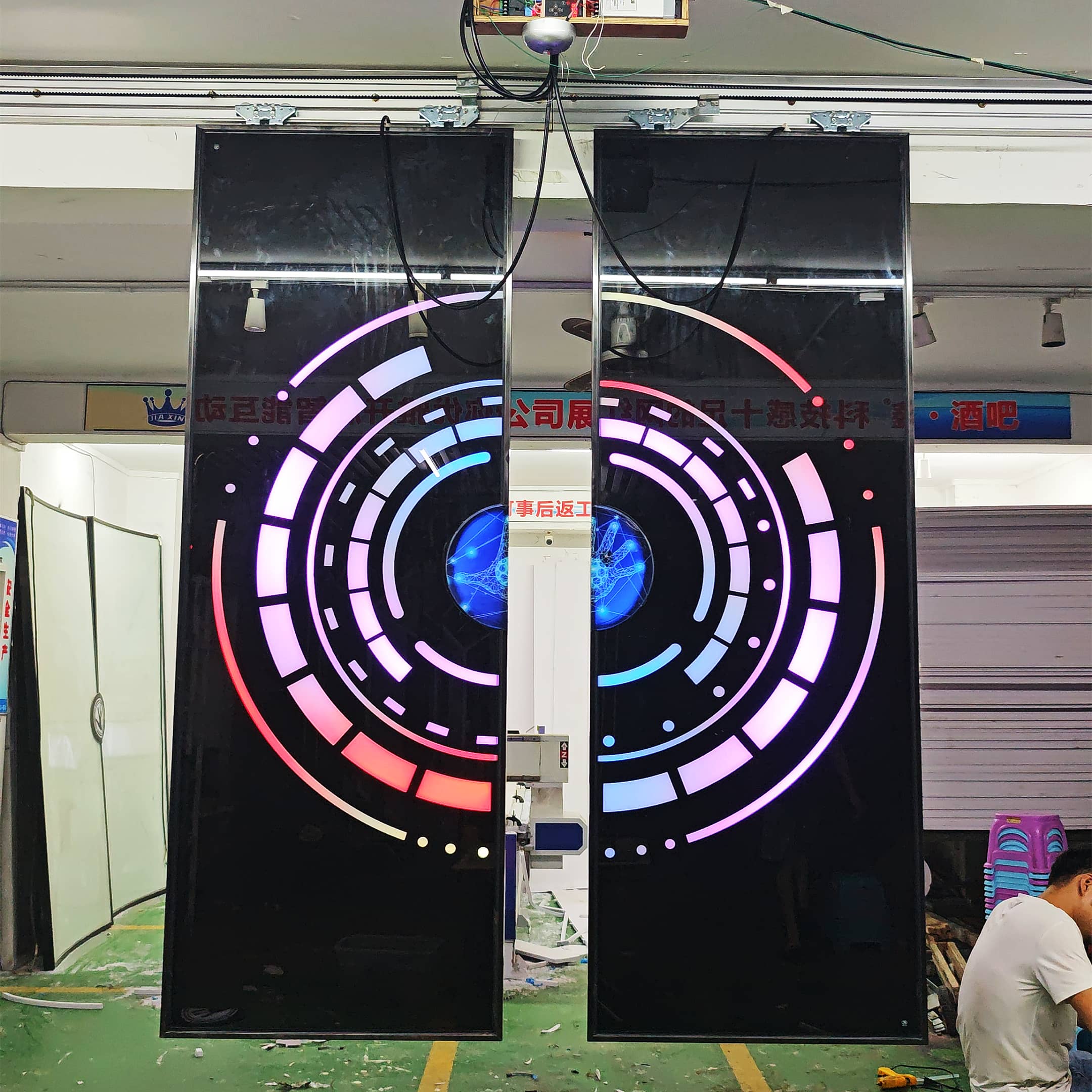 手按科幻感应平移LED门