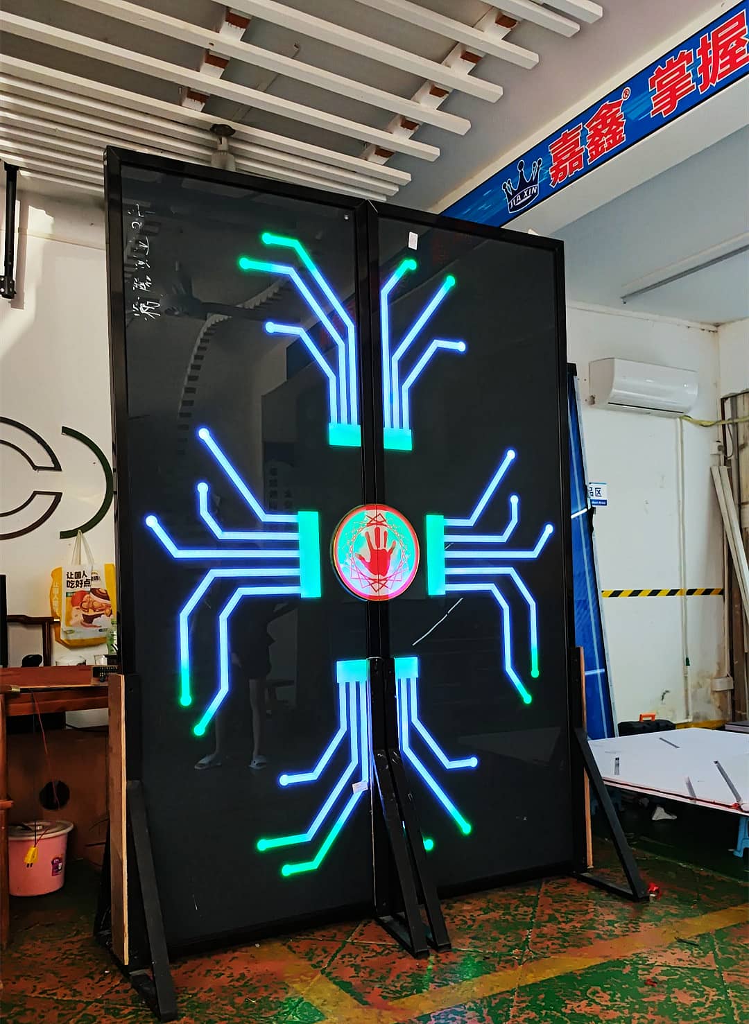 手掌触摸开启梦幻灯光自动感应门